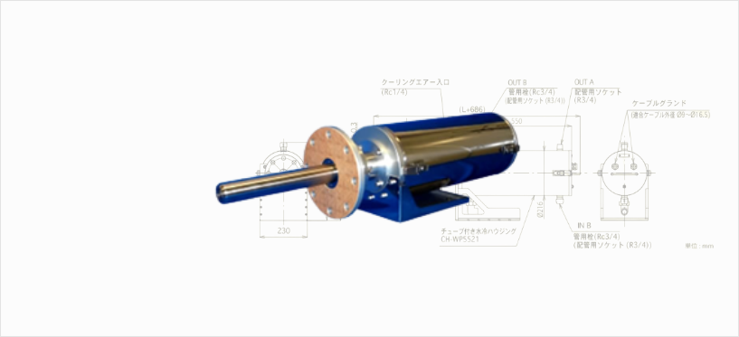 | 材質 | 光学系 耐熱ガラス及び光学ガラス チューブ SUS304(外側) フランジ A5052 |