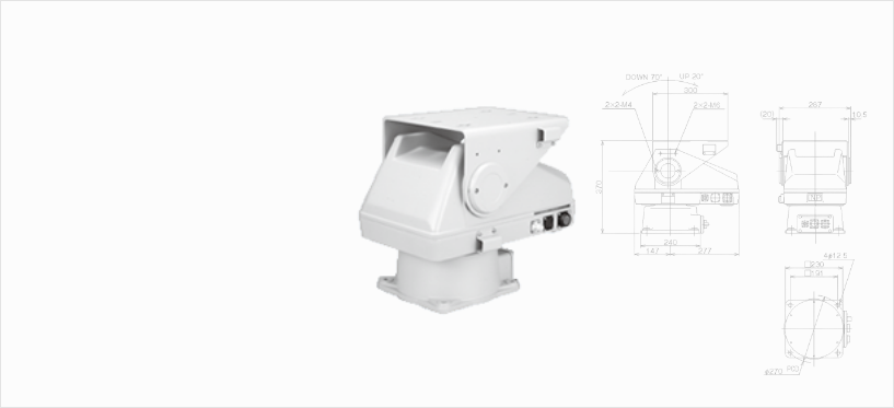 屋外用全天候型電動旋回台です、水平・垂直用共出力40Wモーターを使用。ウォームギヤを併用し、強風等の厳しい環境に耐えうるような設計がされています。特注対応によりプリセット・速度可変・耐寒・耐塩等の対応が可能となり、ハウジングCH-3500シリーズ・CH-4500シリーズなどを搭載し、監視やファンサービス用カメラとして幅広くご使用いただけます。