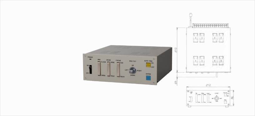ハウジング、旋回台、ズームレンズをリモート制御する操作器です。